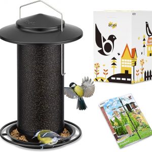 iBorn Bird Feeders for Outdoors, All Metal Mesh Tube, Holding Bird Seed for Outside Feeders,18cm Large Roof, 2.8lb(Seed is not Included)-Black