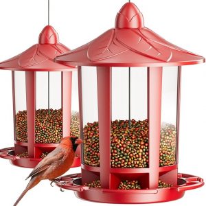 Birdream 2 Pack Bird Feeders for Outdoor Hanging, Classic Castle Design Fun Assembly Bird Feeder, Attracting Wild Birds Cardinals Goldfinches Chickadees Finches Sparrows – Red