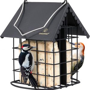 Kingsyard Double Suet Bird Feeder with Weatherproof Roof & Perch, All Metal, Suet Cakes Cage Bird Feeder for Outdoors Hanging, Easy to Clean & Refill, Black