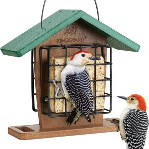 Kingsyard Recycled Plastic Double Suet Feeder with Rainproof Roof & Perch, Cage Suet Bird Feeders for Outdoors Hanging, Great for Woodpecker, Chickadee, Nuthatch (Green)