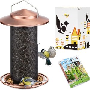 iBorn Bird Feeders for Outdoors, All Metal Mesh Tube, Holding Bird Seed for Outside Feeders,18cm Large Roof, 2.8lb(Seed is not Included)-Copper