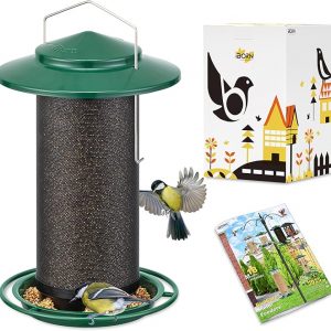 iBorn Bird Feeders for Outdoors, All Metal Mesh Tube, Holding Bird Seed for Outside Feeders,18cm Large Roof, 2.8lb(Seed is not Included)-Green