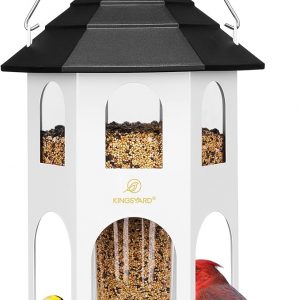 Kingsyard Metal Bird Feeder for Outdoor Hanging, Wild Bird Feeders with Circular Perch, Easy to Clean & Refill, 4 lbs Large Seed Capacity, White