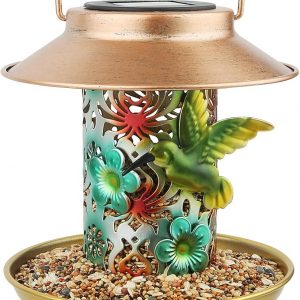 Solar Bird Feeders for Outdoors Hanging – Premium Grade Metal Bird Feeder, Chew-Proof, Weather and Water Resistant Wild Bird feeders, Outside and Garden Decoration-New