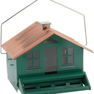 Perky-Pet 339-1SR Squirrel-Be-Gone II Home Style Bird Feeder with Chimney, Squirrel Proof Bird Feeder with Weight-Activated Perches, Large 8lb Capacity Outdoor Wild Bird Feeder-Green