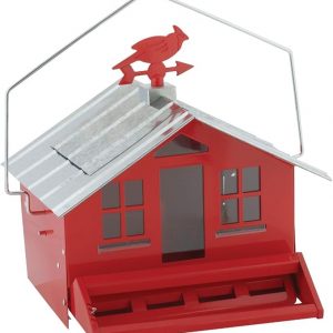 Perky-Pet 339-1SR Squirrel-Be-Gone II Home Style Bird Feeder with Chimney, Squirrel Proof Bird Feeder with Weight-Activated Perches, Large 8lb Capacity Outdoor Wild Bird Feeder-Red