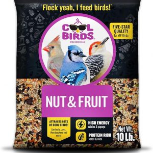 Nut & Fruit Wild Bird Seed – 10 lb. Gourmet Bird Food with Sunflower Hearts, Peanuts, Tree Nuts & Real Fruit – No Corn, Milo or Millet Bird Seed for Outside Feeders