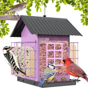 Bird Feeders for Outdoors Hanging, Metal Bird Feeder with Double Suet Cage Cake, Large Capacity, Birdfeeders Sturdy & Weatherproof, Easy to Clean & Refill, Great for Attracting Wild Birds-Purple