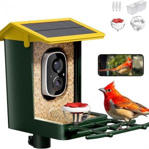 Bird Feeder with Camera Solar Powered 2K HD Video, 10,000+ Species AI Recognition, Real-Time App Alerts, and Weatherproof Design for Effortless Birdwatching, Gift for Bird Lovers, Yellow