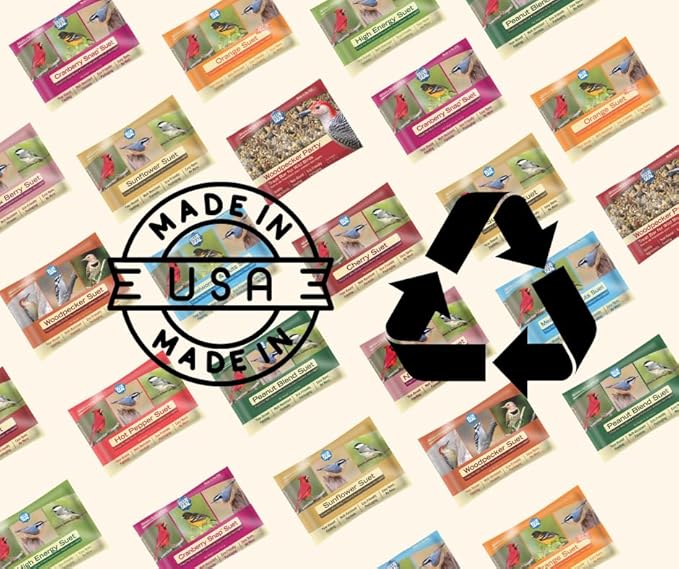 • Preserving Nature – Our easy-open wrapper uses 80% less packaging than suet products in trays. And our packaging was designed to be 100% Recyclable. We are proud to be made in the USA. By bird-lovers for bird-lovers… Did we mention that we like birds?