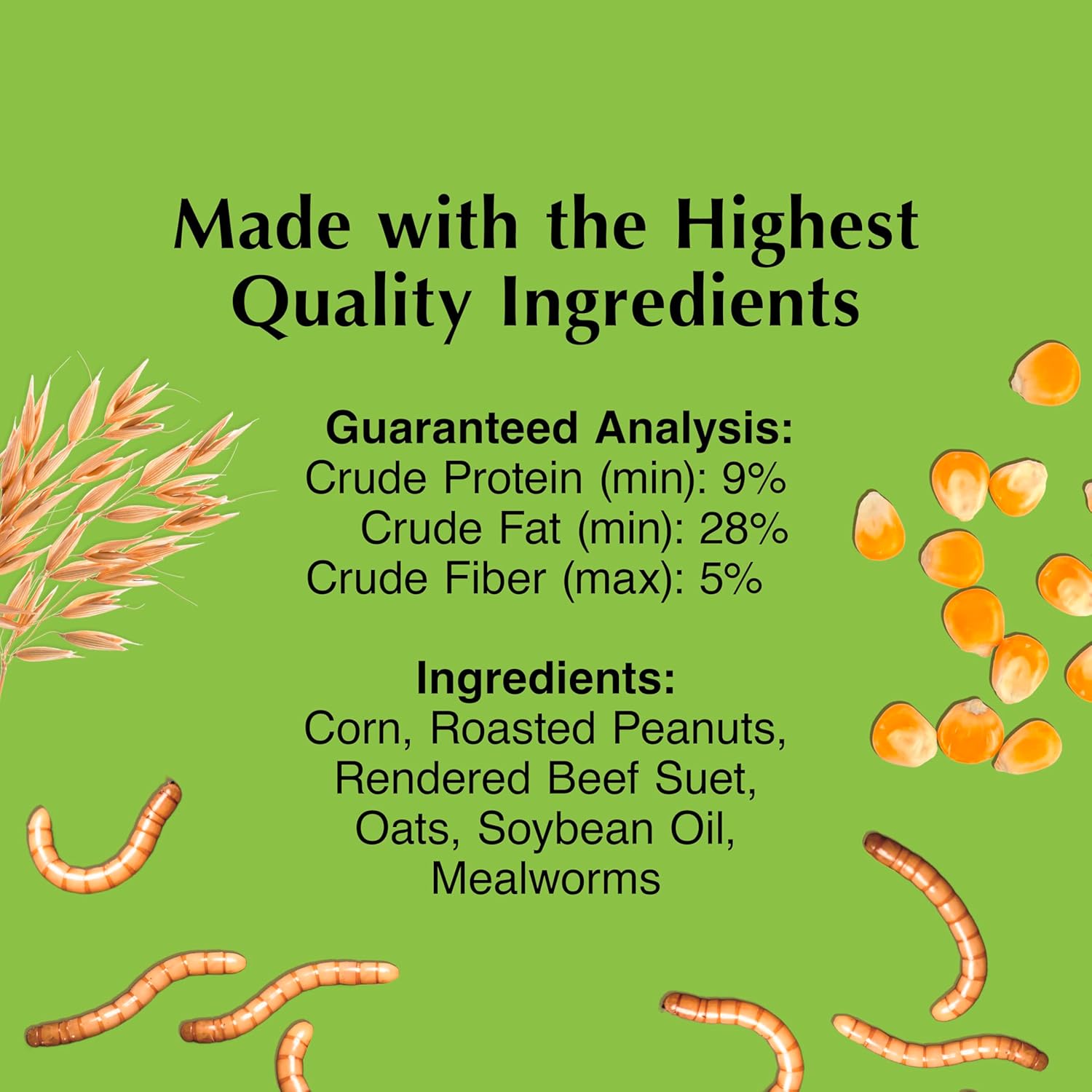 Corn; Roasted Peanuts; Rendered Beef Suet; Oats; Soybean Oil; Mealworms