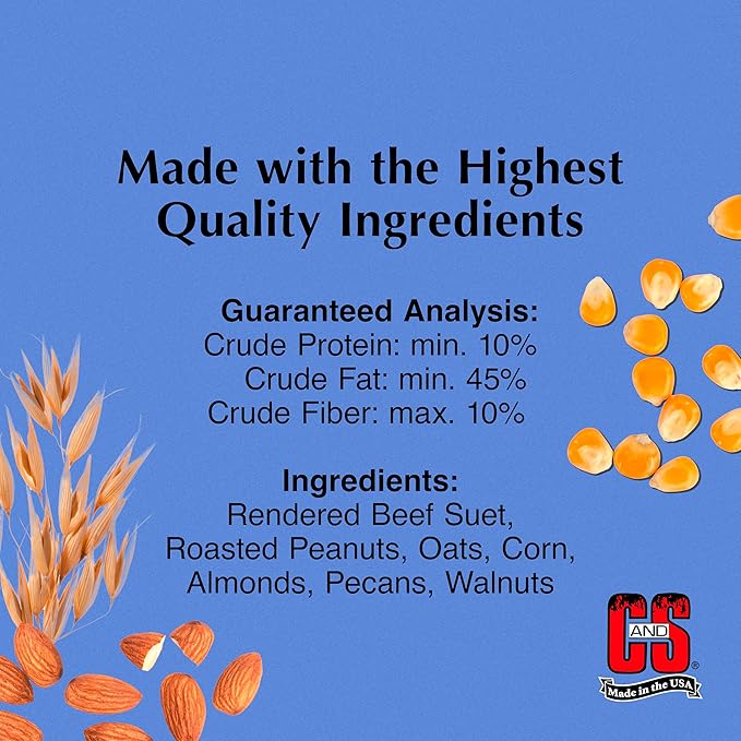 Rendered Beef Suet, Roasted Peanuts, Oats, Corn, Almonds, Pecans, Walnuts