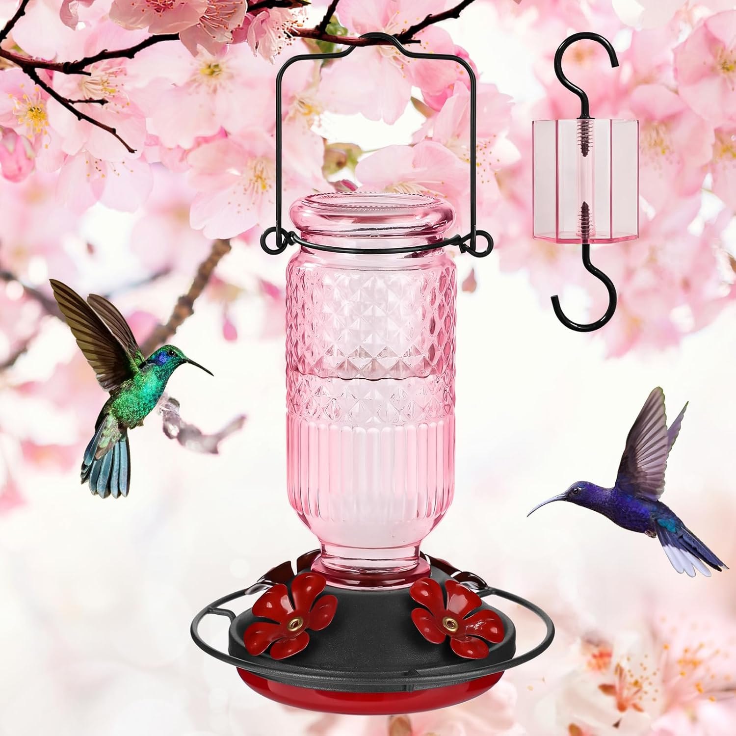 FEED GARDEN Glass Hummingbird Feeders for Outdoors, 16 OZ Hummingbird Feeder with 4 Bee Guard Feeding Ports & Built-in Ant Moat, Humming Bird Feeder-Blue quantity