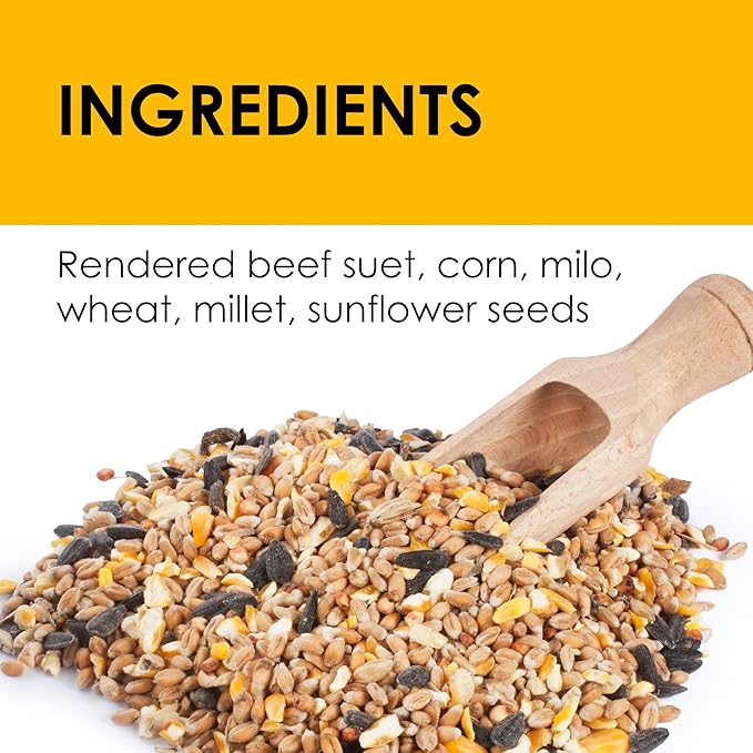Corn, Millet, Milo, Rendered Beef Suet, Sunflower Seeds, Wheat